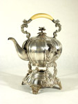 Bouilloire à thé, son support et sa lampe (manque le brûleur), en