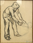 Maximilien Luce (1858-1941). "Le Faucheur". Fusain et aquarelle sur papier, signé en bas à gauche. 30x23 cm. ... |