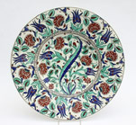 Grande assiette Boch Frères Kéramis à décor Iznik. Années 1880. Diamètre de 49,5 cm. Porte au dos l'inscription BFK/24 suivi de... |