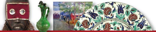 Quelques points forts de ce site personnel, qui sera d’ailleurs en perpétuelle évolution et transformation : La galerie consacrée à Iznik dans la céramique européenne, qui comporte près de 70 pièces, toutes créées par les céramistes européens du 19e siècle qui copièrent ou adaptèrent les motifs traditionnels de la céramique turque, accompagnées d’un dossier complet détaillant l’historique de cette recherche stylistique. La section Arts Africains ensuite, qui, avec près de 90 pièces, constitue un panorama très partiel de ce continent merveilleux où chaque chose était régie par les esprits. A signaler aussi, dans la section réservée aux artistes, les galeries de Fikret Moualla et de Ferit Iscan. Dans la section « céramiques », un très rare drageoir de Kutahya ; dans la section « bronzes et métaux », une paire de porcelaines japonaises Hirado transformées en lampe par Barbedienne ; dans la section « Sculptures », une ravissante baigneuse accroupie de Philippe Besnard...