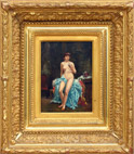 Exquise petite huile sur panneau à sujet orientaliste, représentant une odalisque tenant dans ses mains une tasse de café.... |