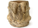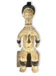 | Statuette d'ancêtre féminin, assise sur un coffre, ornée de bracelets et de colliers en... |