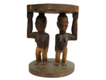 | Tabouret cariatide, couple debout sur une base ronde supportant une table. Bois... |