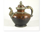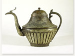 Bouilloire à thé, son support et sa lampe (manque le brûleur), en métal doublé d'argent...