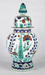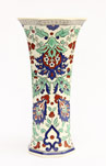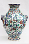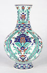 | Cette galerie, consacrée aux reproductions, adaptations et interprétations des Iznik dans la céramique européenne au 19e siècle, comporte une centaine d'objets différents, appartenant tous à la collection Akérart. Un dossier complet est consacré à ce sujet sur ce site, avec un grand nombre de renseignements concernant l'apparition d'Iznik en Europe et les céramistes qui s'en inspirèrent. [ Voir et lire le dossier complet consacré à ce sujet ] |