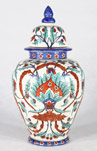 | Cette galerie, consacrée aux reproductions, adaptations et interprétations des Iznik dans la céramique européenne au 19e siècle, comporte une centaine d'objets différents, appartenant tous à la collection Akérart. Un dossier complet est consacré à ce sujet sur ce site, avec un grand nombre de renseignements concernant l'apparition d'Iznik en Europe et les céramistes qui s'en inspirèrent. [ Voir et lire le dossier complet consacré à ce sujet ] |