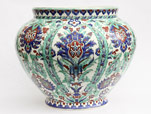 | Cette galerie, consacrée aux reproductions, adaptations et interprétations des Iznik dans la céramique européenne au 19e siècle, comporte une centaine d'objets différents, appartenant tous à la collection Akérart. Un dossier complet est consacré à ce sujet sur ce site, avec un grand nombre de renseignements concernant l'apparition d'Iznik en Europe et les céramistes qui s'en inspirèrent. [ Voir et lire le dossier complet consacré à ce sujet ] |