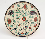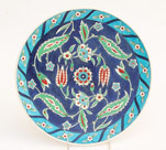 | Plat à décor Iznik, de 31,5 cm de diamètre, sans glaçure. Signé RL au dos. Il s'agit... |