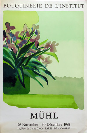 Affiche lithographique originale, editée par la Bouquinerie de l'Institut, pour l'exposition Mühl en novembre 1992. 92x61 cm.