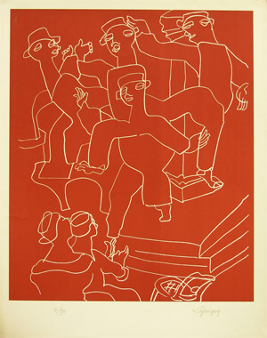 "Théâtre". Lithographie originale de Charles Lapicque (1898-1988). Signée et numérotéé 4/50. 1966. 67 x 53 cm.