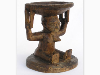 Porteuse de coupe en bois sculpté.Peuple Yoruba, Nigéria. Hauteur: 22 cm.