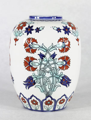 Vase à décor stylisé Iznik. Hauteur 24 cm.