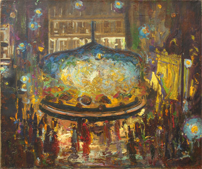Ecole française, années 1920. "Manège à Paris". Huile sur toile, 46x55 cm.