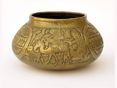 Bol en cuivre doré aux caractères hébraïques. Syrie, fin du 19e siècle. 22 cm de diamètre, 11 cm de hauteur.