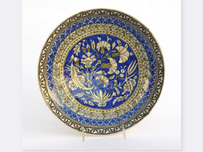 Plat en céramique à décor floral polychrome. Dynastie Qâjâr. Iran, 1850. 29 cm de diamètre