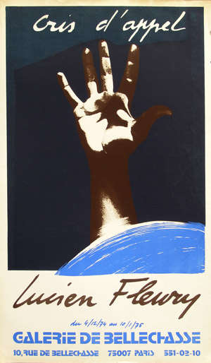 Affiche lithographique originale. Exposition Fleury à la galerie de Bellechasse en décembre 1974. 78x45 cm.