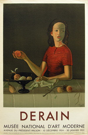 Affiche lithographique originale. Exposition Derain au musée national d'Art Moderne en décembre 1954. 72x48cm.