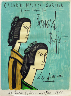 Affiche lithographique originale. Exposition "Le Japon" de Bernard Buffet à la galerie Maurice Garnier en février 1981. 71x51 cm.