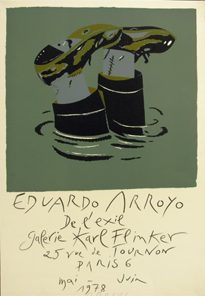 Affiche lithographique originale, signée par l'artiste. Exposition Arroyo à la galerie Karl Flinker en mai 1978. 72x49 cm.