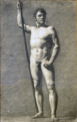 Pithou le Jeune, ou Nicolas Pierre Pithou (1750-1818). Fusain sur papier, signé au dos, daté 22 juin 1812. 59x38 cm.