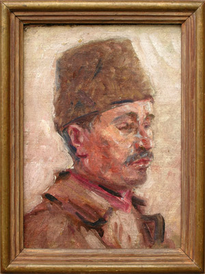 Huile sur toile, probablement éxecutée par un peintre appartenant à l'école turque, représentant un officier de la lutte d'indépendance nationale. 21x16 cm, circa 1920/1922.