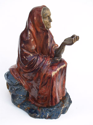 Cette "mendiante" adaptée par Müller porte la signature d'Alfred Lenoir (1850 - 1920), qui réalisa notamment un Monument à Berlioz et à César Franck (Hôtel de ville de Paris), et l'une des statues ornant le Pont Alexandre III à Paris. Hauteur: 58 cm. |