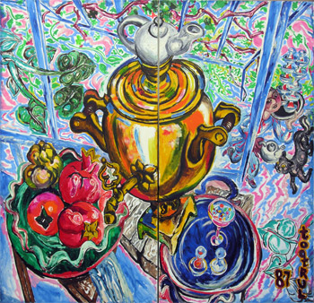 Né en 1930 à Bakou (Azarbeïdjan, ex-URSS). Poursuivant simultanément une carrière de ténor, il expose dès 1955 à Moscou. Il a participé à l'exposition "l'Art Russe des Scythes à nos jours", organisée en 1967 au Grand Palais; et aux expositions "d'art contemporain soviétique" en 1987 et 1988 à la galerie de France. Dyptique, 1987, huile sur toile, 230 x 240 cm.