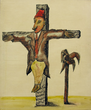 Né en 1951, et fils du poète Nazim Hikmet. Technique mixte sur panneau, datée 1977, signée au dos. 65x54 cm.