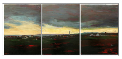 Emre Tandirli (né en 1977) . Tryptique. Huiles sur support plastique, signées. 81x180 cm. 2005.