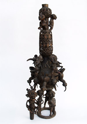 Grande sculpture en bronze, de 145 cm de hauteur. Cameroun.