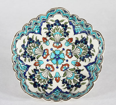 Assiette polylobée à décor Iznik d'Edmond Lachenal. Diamètre 21.5 cm. Signée au dos.Circa années 1880.