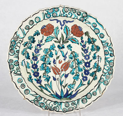 Assiette à décor Iznik, de 34cm de hauteur.. Signé Lachenal au dos. Formé chez son père Edmond, il exécuta ses propres pièces dès l’âge de 16 ans et exposa pour la première fois à 19 ans.