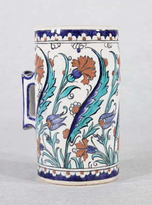 Hanap à décor Iznik, circa fin XIXe. Hauteur 17.2 cm. Signé d'un double "L" entourant un "C" à la base.