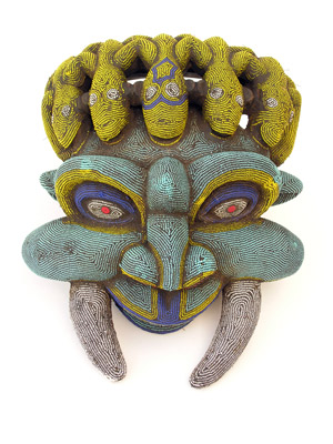 Masque perlé Bamileke (Cameroun). Hauteur: 45 cm.