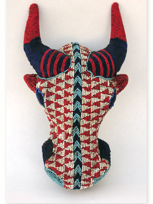Masque perlé Bamileke (Cameroun). Hauteur: 55 cm.